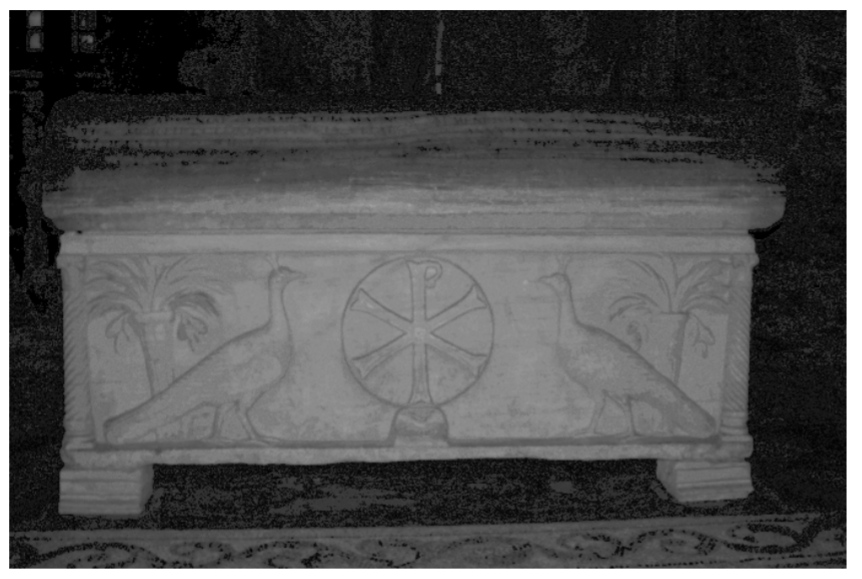 Ravenna, Basilica di S. Vitale. Sarcofago (IV-V sec.) dell’e[xarco” Isaacio (625-643). Retro con iscrizione latina nel coperchio e pavoni affrontati a monogramma cristologico nella cassa. Continua a leggere Sarcofago 02